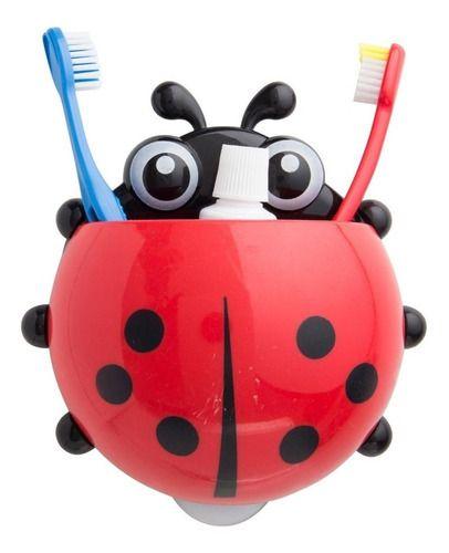 Porta Escova e Pasta de Dente Joaninha com Ventosa Vermelho